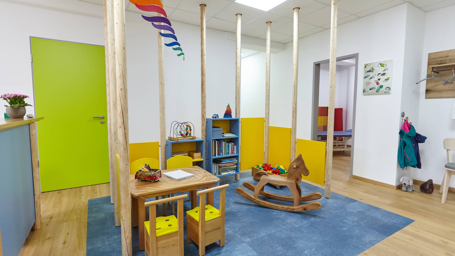 Unsere Praxis ist speziell auf die besonderen Bedürfnisse unserer jungen Patientinnen und Patienten ausgerichtet. Ein kindgerechtes, ruhiges und motivierendes Bewegungs- und Behandlungsumfeld trägt dazu bei, dass sich alle bei uns wohlfühlen. Die Praxis befindet sich im Erdgeschoss und ist selbstverständlich barrierefrei zugänglich.